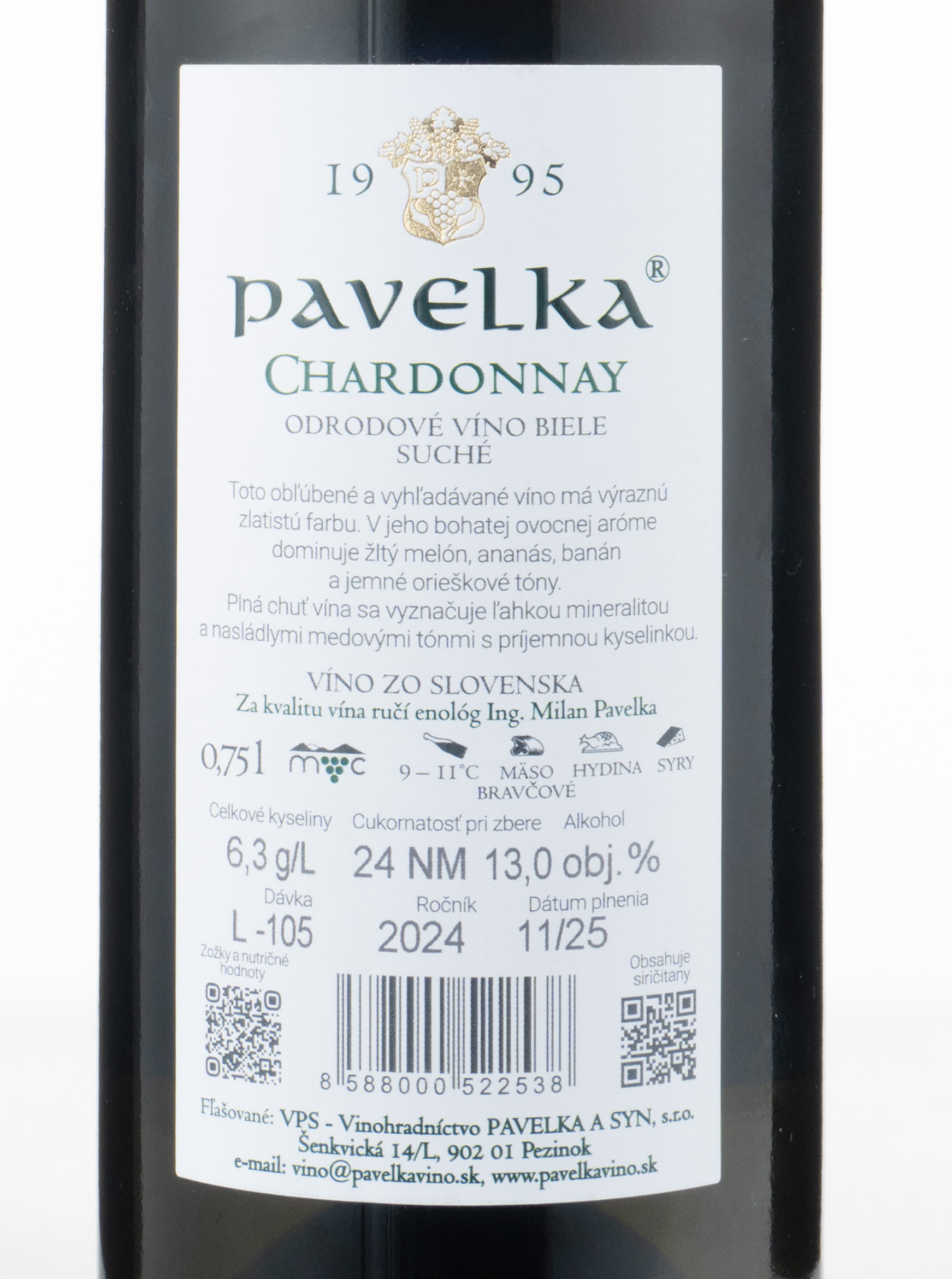 Chardonnay 2024, suché, Vinohradnictvo PAVELKA A SYN