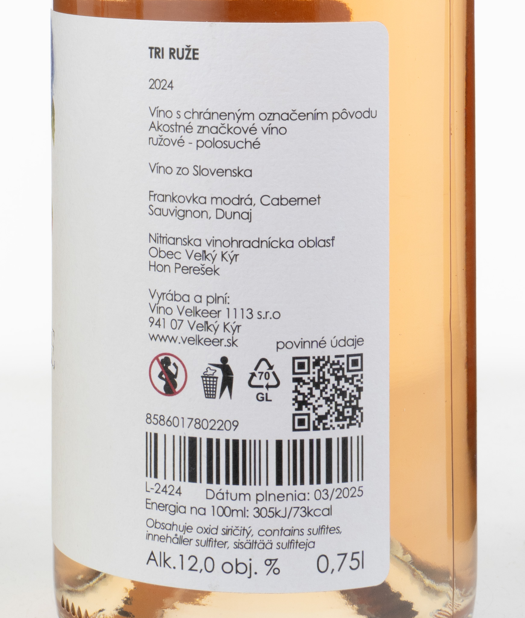 Tri ruže 2024, polosuché, VÍNO VELKEER